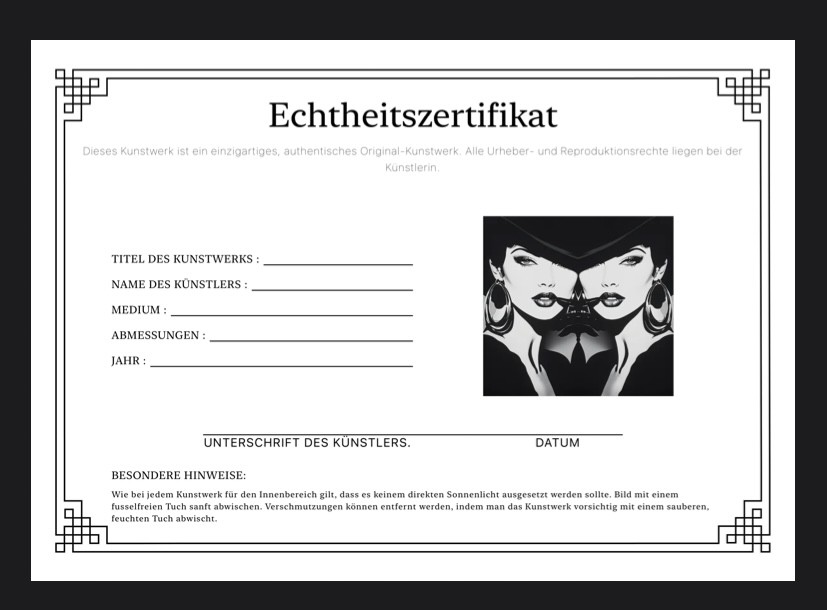 Das Kunstwerk „Lady in Black“ ist ein Unikat.
