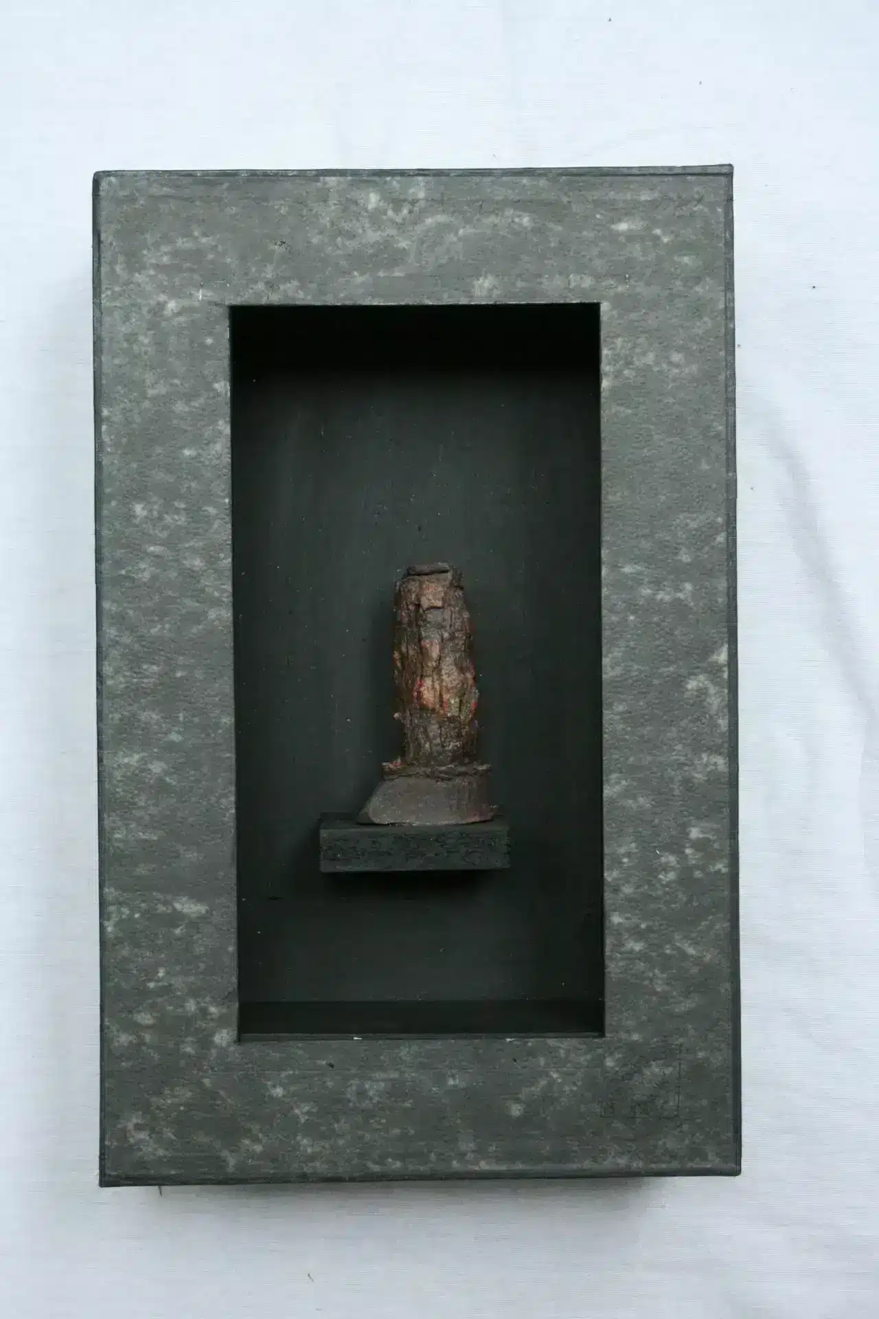 So entstand dieses Objekt aus einem Fundstück, das ich 2011 bei Barcelona entdeckte – ein korrodierter Eisenbolzen, dessen Form sofort an ein altes Fruchtbarkeitssymbol erinnerte. Was wäre, wenn er tatsächlich als Artefakt in einem Museum gelandet wäre – versehen mit Materialangabe, Fundort und mutmaßlicher Bedeutung?