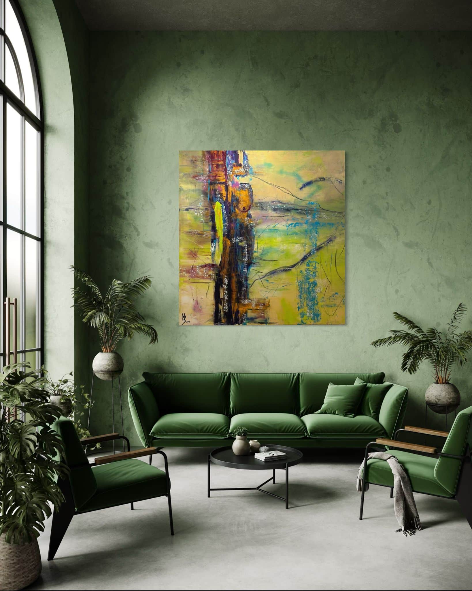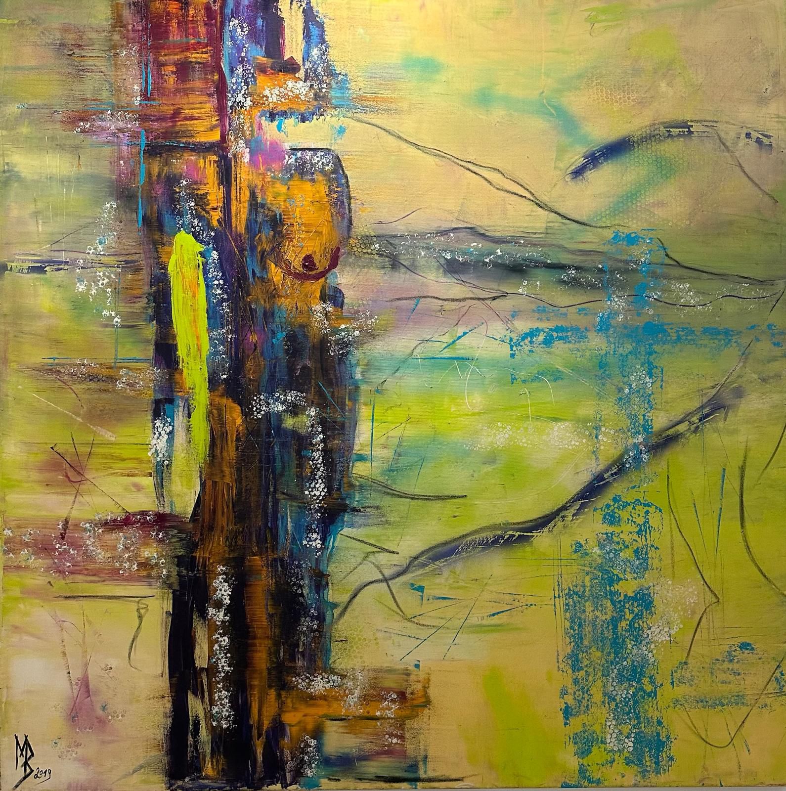 Schicht um Schicht entstehen Spannungen zwischen Sichtbarkeit und Verbergen, zwischen innerer Klarheit und äußerer Fragmentierung. Die Farbflächen und Linien folgen weniger einer rationalen Ordnung als einem inneren Impuls – ein malerischer Prozess, der selbst Ausdruck jener Intuition ist, die der Künstler im Menschen zunehmend bedroht sieht.