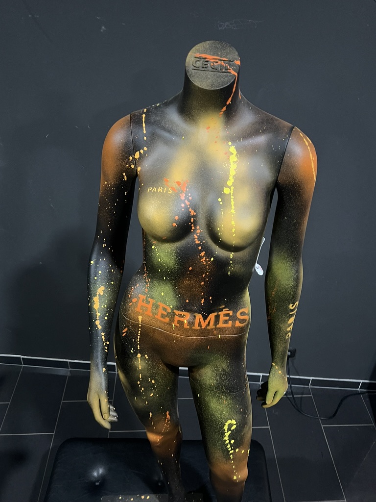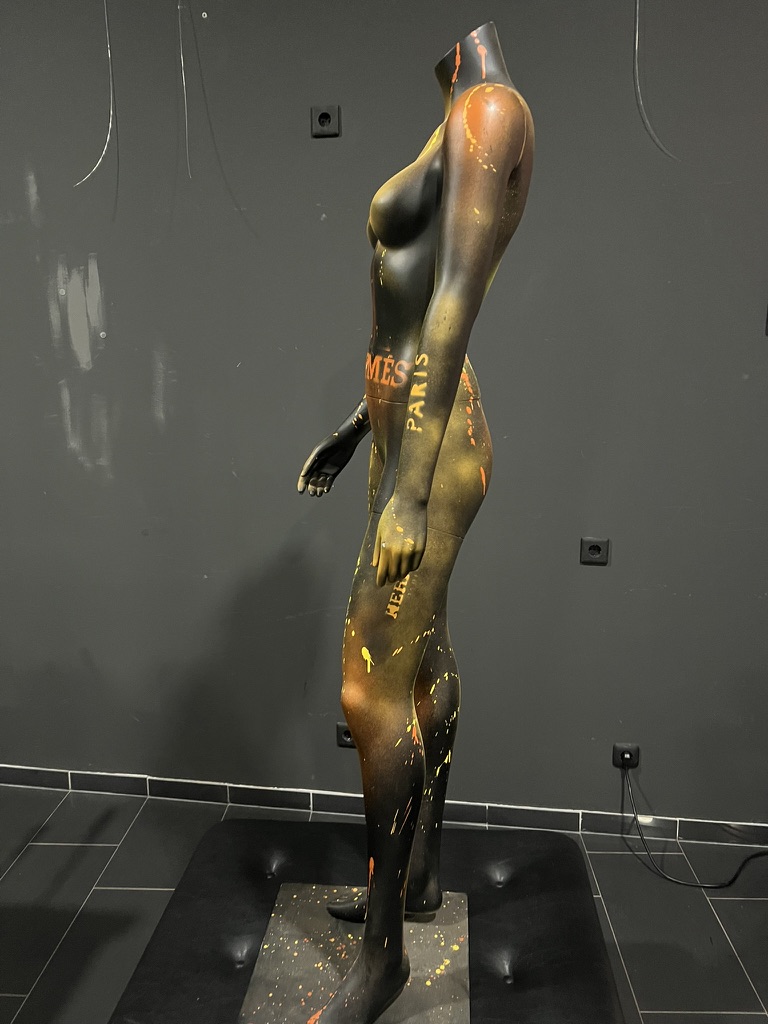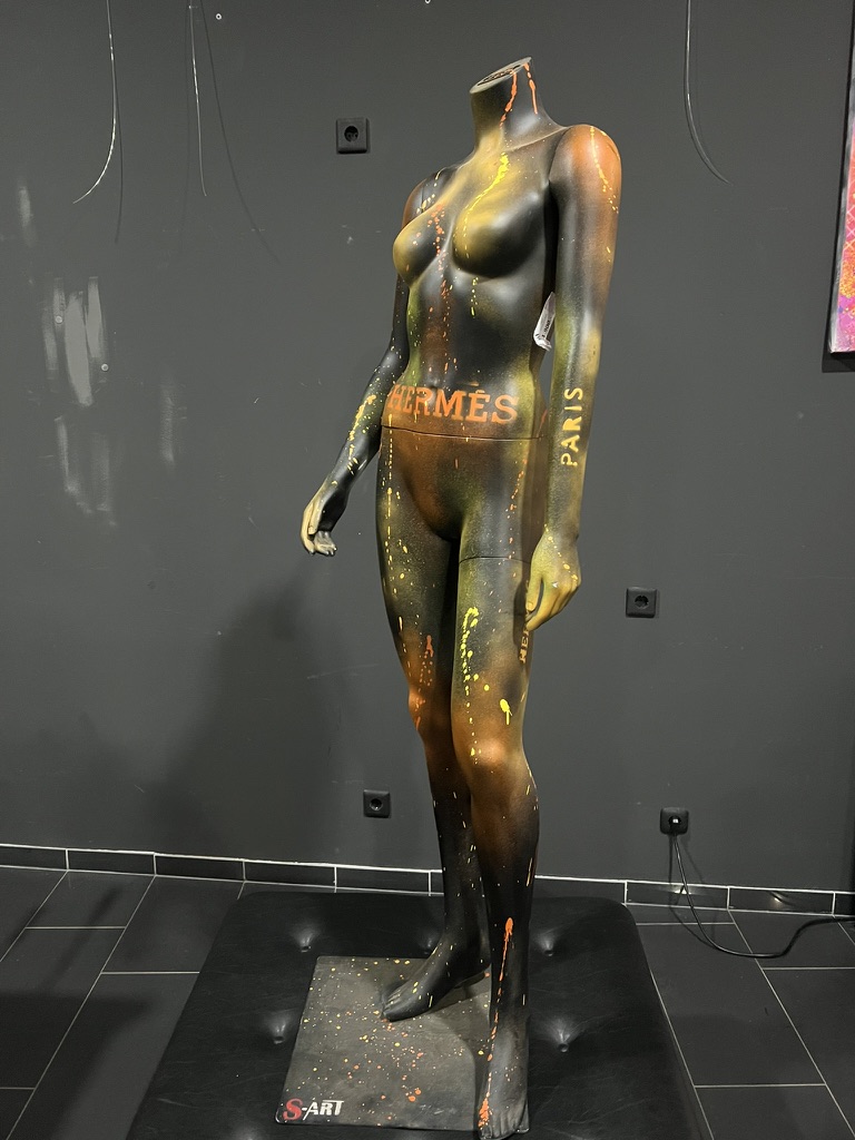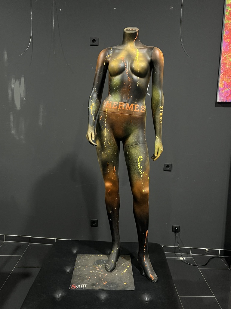 Diese einzigartige Kunstskulptur verbindet die Eleganz einer stilisierten weiblichen Silhouette mit modernem Street-Art-Charakter. Die Figur ist in tiefem Schwarz gehalten und mit dynamischen Farbakzenten veredelt, die ihr eine ausdrucksstarke, fast mystische Ausstrahlung verleihen. Ein exklusives Designobjekt, das jeden Raum in eine Galerie verwandelt – kraftvoll, modern und absolut außergewöhnlich.