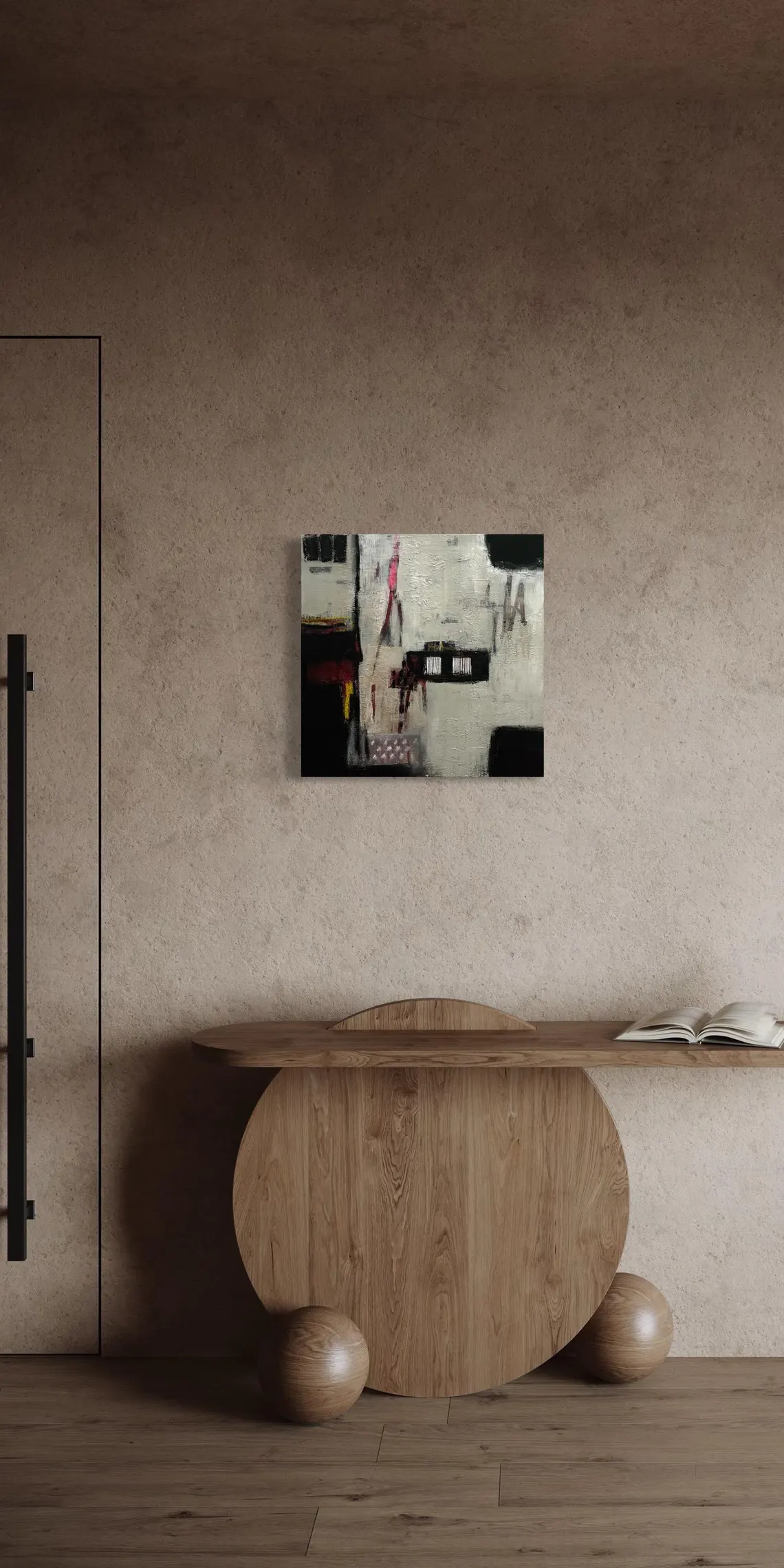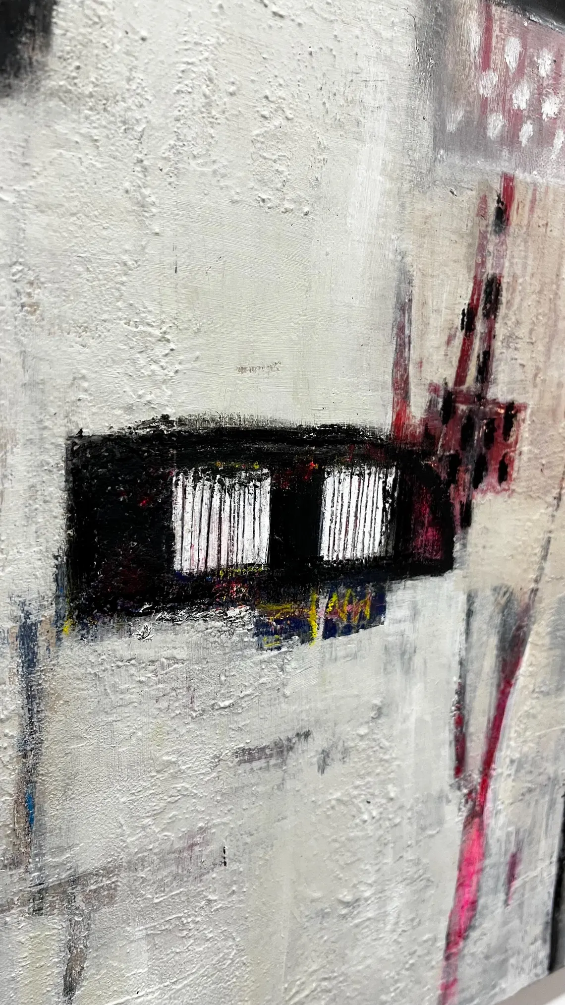 Die plastischen Schichten verleihen dem Werk eine greifbare Tiefe, als wären Gedanken eingeschrieben, überdeckt, doch noch spürbar.