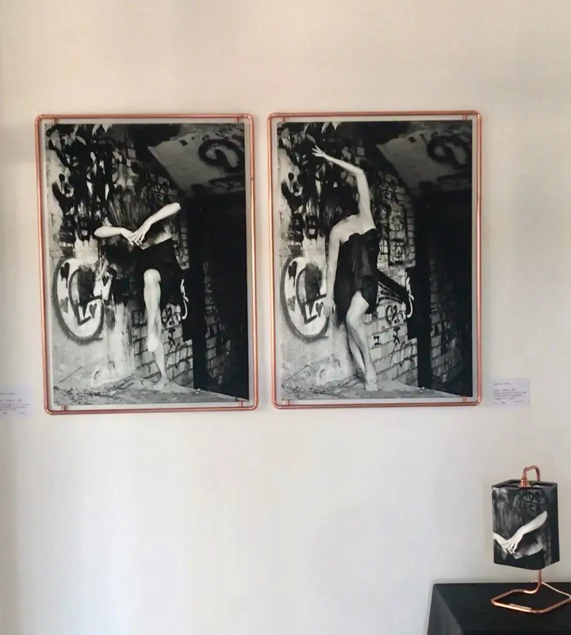 Technik: Sublimationsdruck auf Leinwand in Museumsqualität – auf Holzrahmen gespannt. Aus Kupferrohr von der Künstlerin per Hand hergestellter Rahmen.