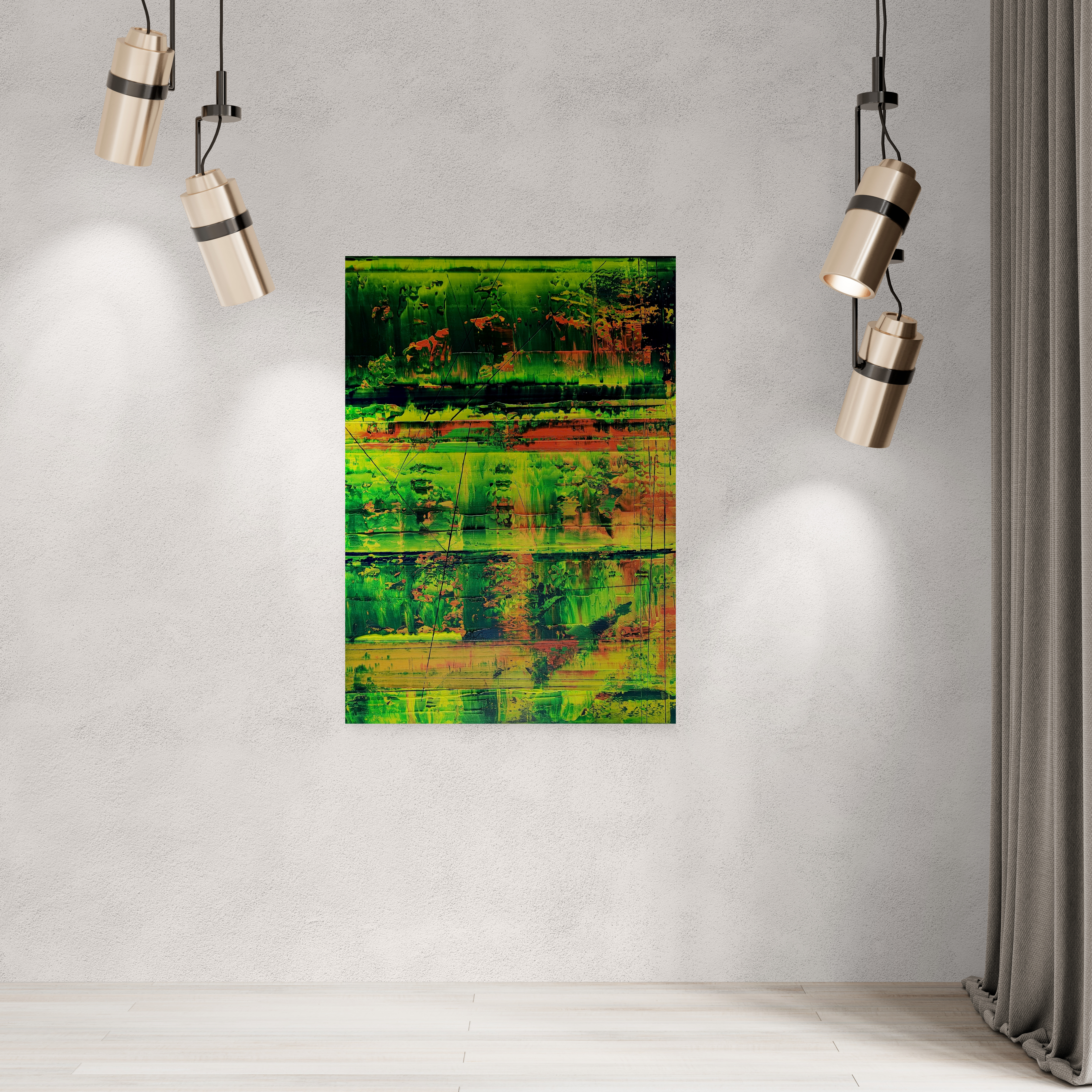 Dieses Werk wirkt wie ein Nachhall. Etwas hat sich gesetzt, ohne zu verschwinden. Die Farben wirken ruhiger, konzentrierter, als hätten sie ihre Position gefunden.